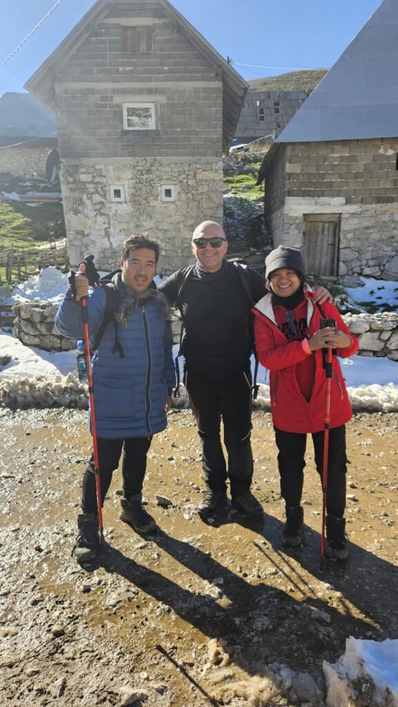 Nakon kraće okrijepe na vrhu, nastavili smo put do Lukomira. Dolazak u selo bio je pravo osvježenje – kamene kućice, stada ovaca i široki vidici dočekali su nas kao prizori iz nekog drugog vremena.